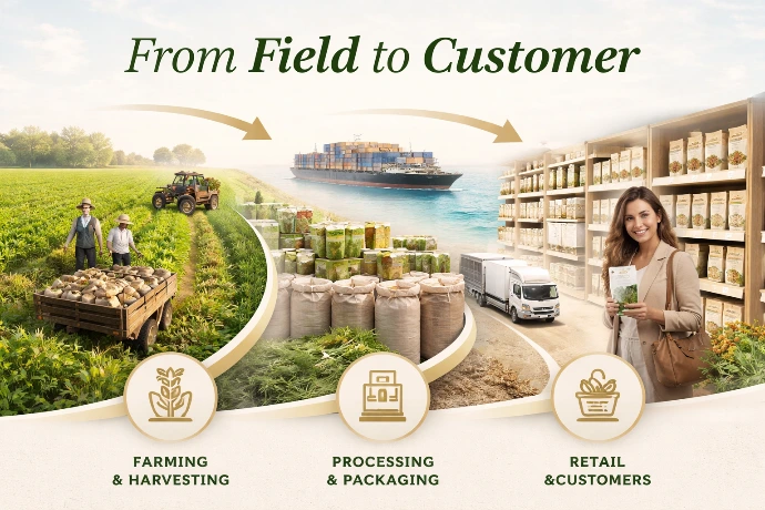 With operations rooted in Egypt, we maintain strong control over sourcing, processing, and quality. By working closely with trusted farms and suppliers, we ensure that every product meets international standards.